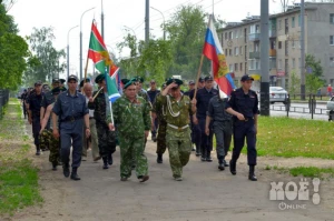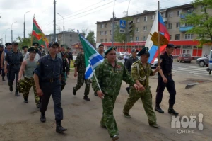 В 11.00 началось шествие. Участники митинга прошагали по улицам Советской, Чичканова и Мичуринской до памятника воинам-интернационалистам. В 12.00 состоялось возложение цветов к памятнику воинам-интернационалистам на Мичуринской, 112.