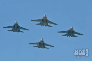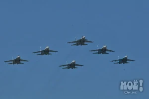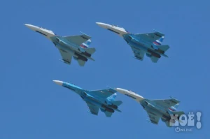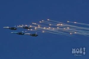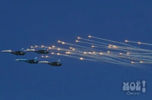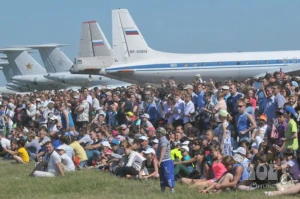 Воздушные асы на истребителях МиГ-29 и Су-27 показали элементы воздушного боя, фигуры высшего пилотажа — «мертвую петлю», «бочку», «колокол». Руководил их действиями прославленный генерал-майор, Герой России Александр Харчевский. А вот стратегические ракетоносцы в тамбовском небе появились впервые. Краса и гордость российских ВВС пролетели над аэродромом и скрылись вдали.