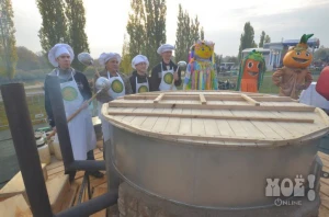 А еще 200 килограммов того же продукта на сковороде диаметром 2,5 метра пожарили бондарские кулинары