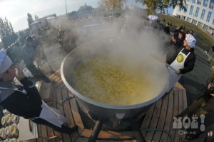 По уже сложившейся традиции на Покровской ярмарке всех желающих угощали вареной картошкой. В 9 часов утра кулинары разожгли костры, нагрели котел и начали приготовление 378 килограммов картофеля — именно столько в этом году исполнилось Тамбову.