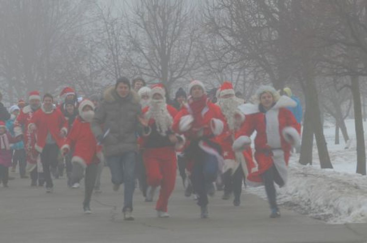 Чтобы принять участие в марафоне новогодних волшебников, в красные костюмы нарядились не только молодые люди, но и дедушки в возрасте